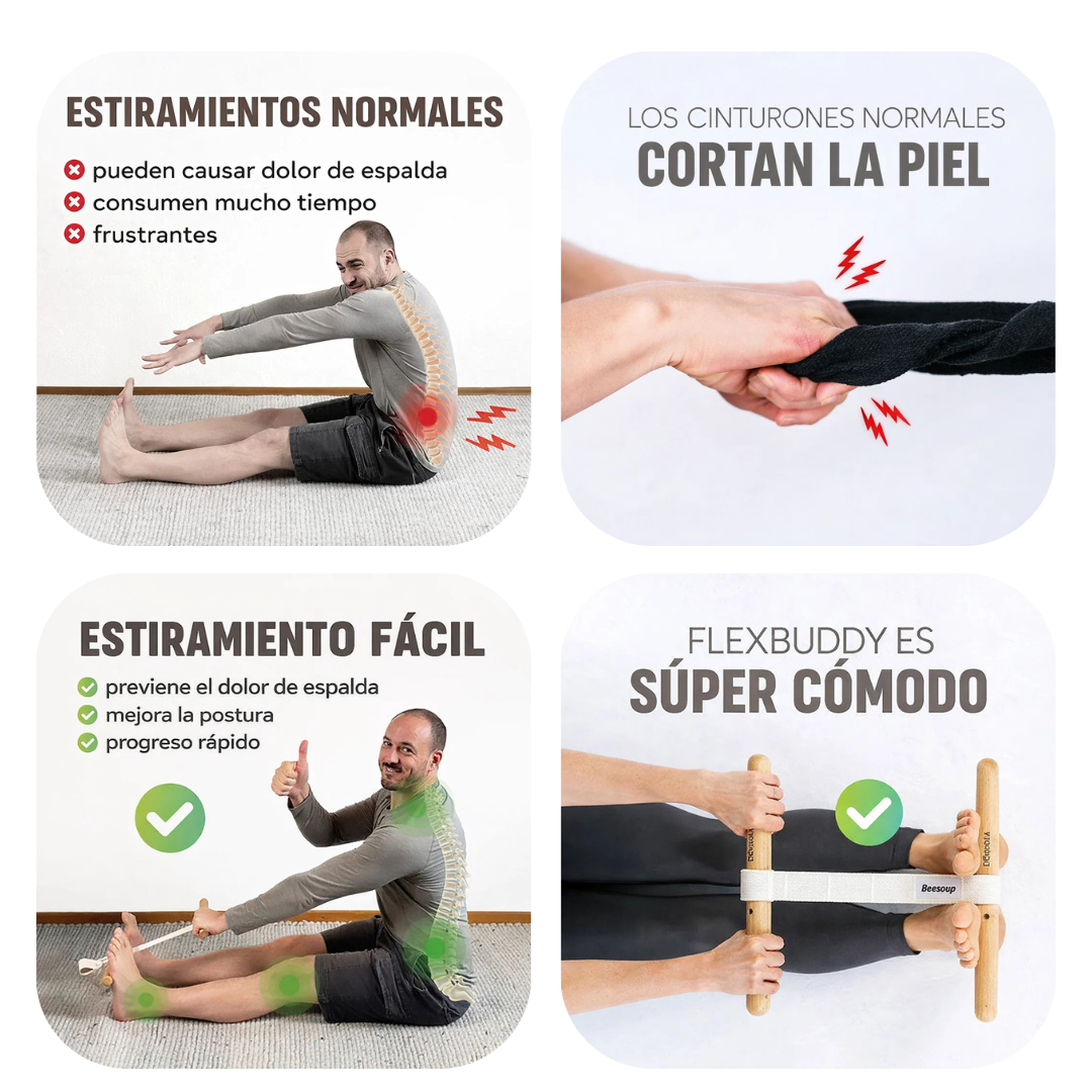 FlexBuddy hace que el estiramiento sea fácil y efectivo.