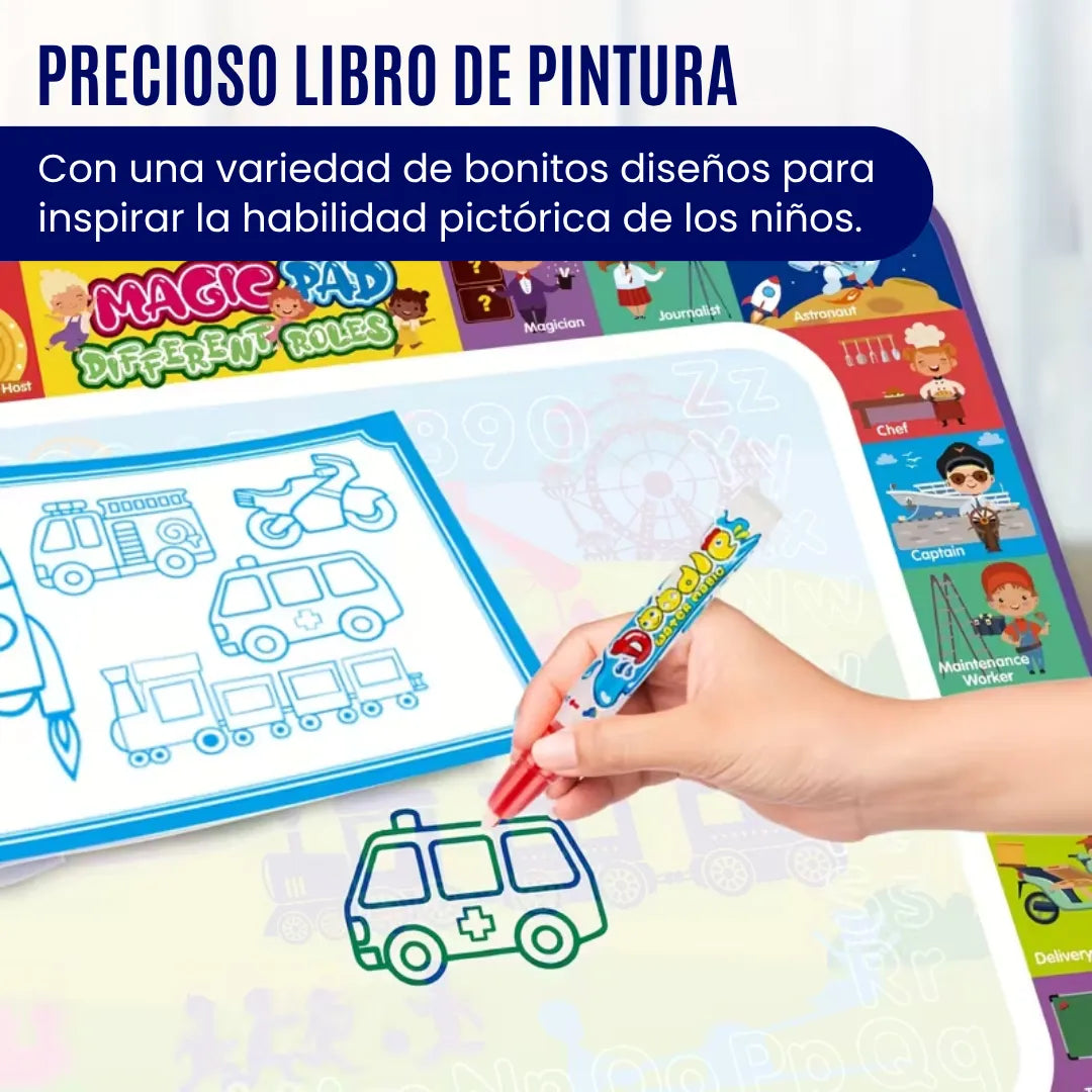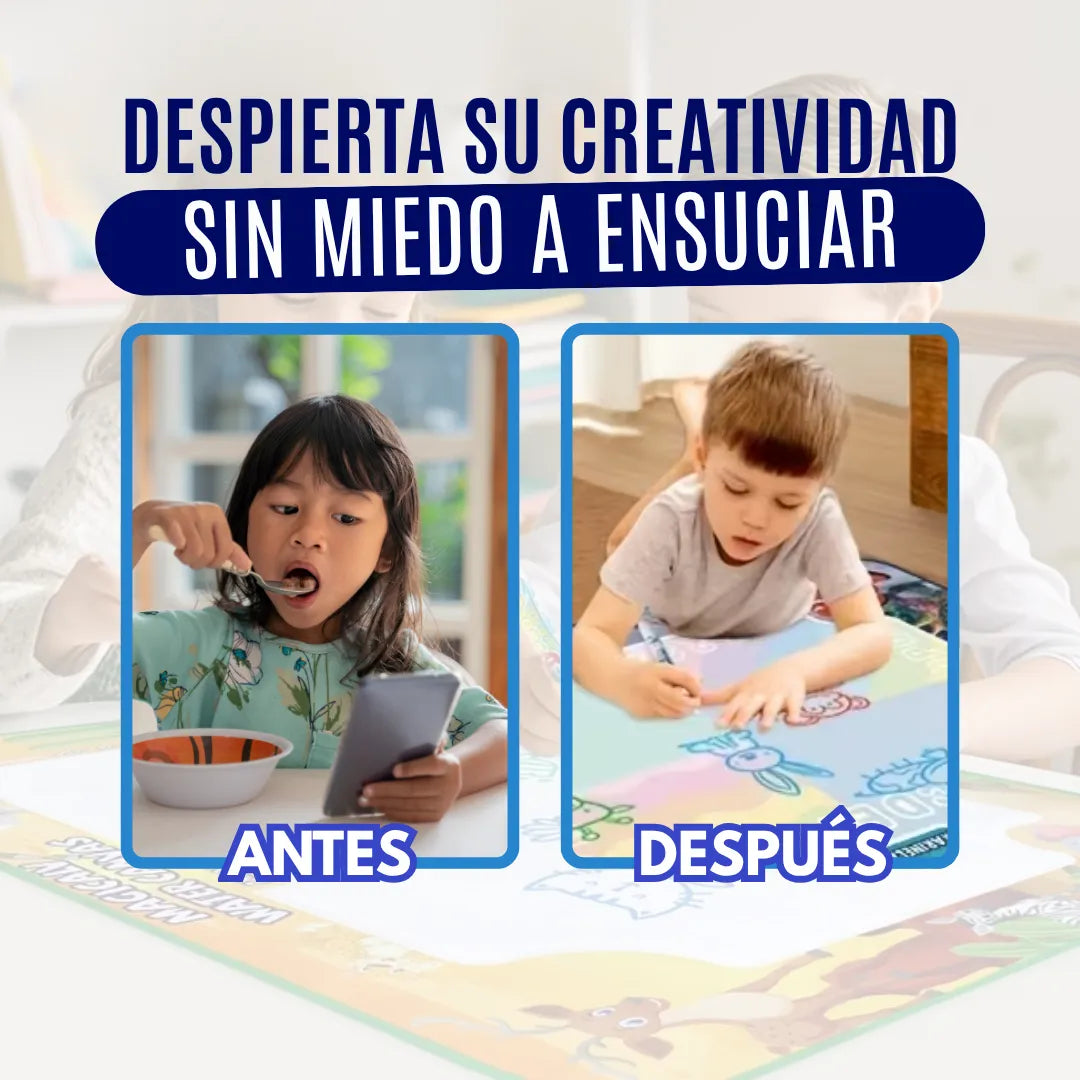 El sistema de dibujo con agua cautiva al niño sin estímulos digitales. Le ofrece una actividad tranquila, sensorial y creativa que reduce la dependencia del celular o Tablet