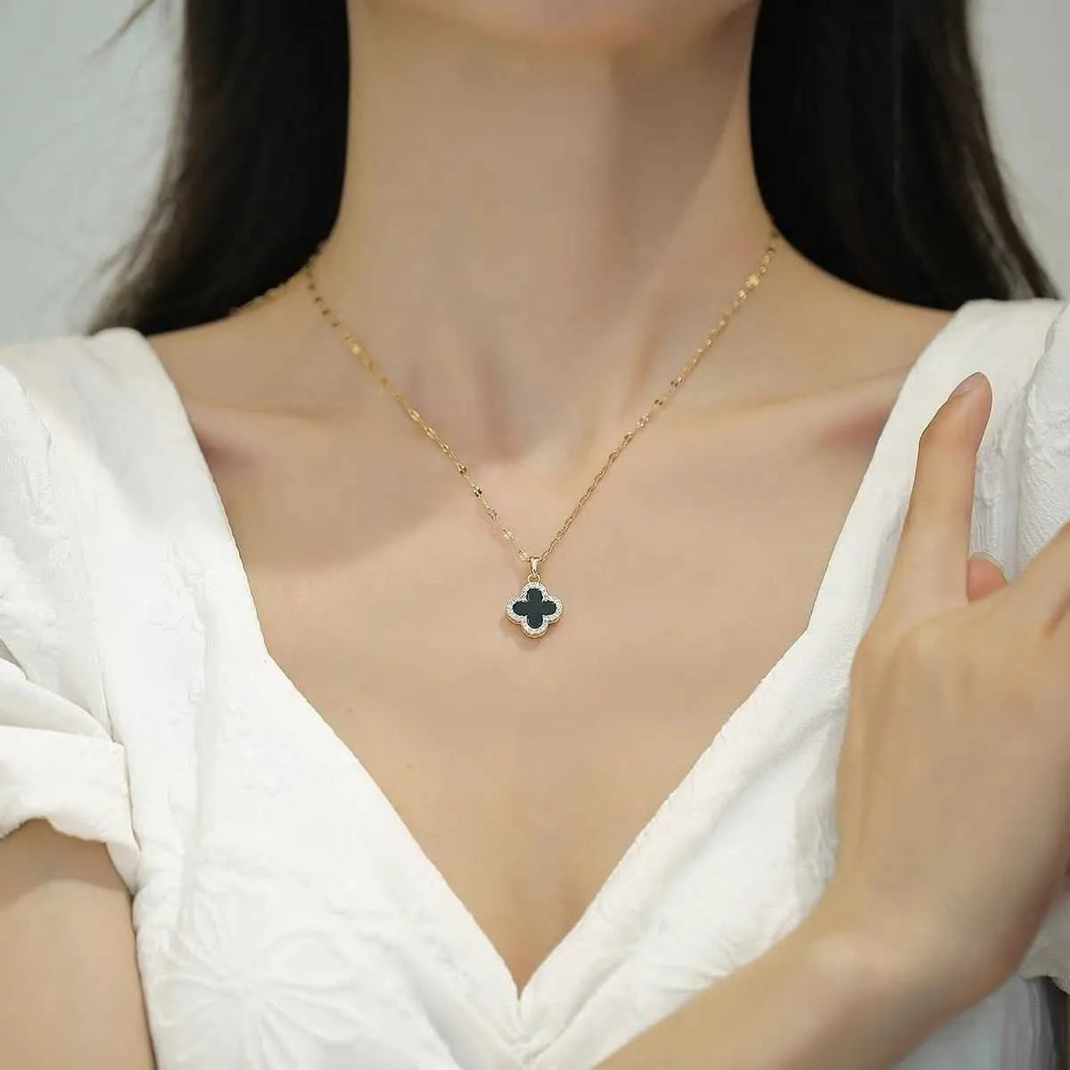 1 Collar Trebol de 4 hojas doble faz(Negro por un lado y blanco por el reverso)