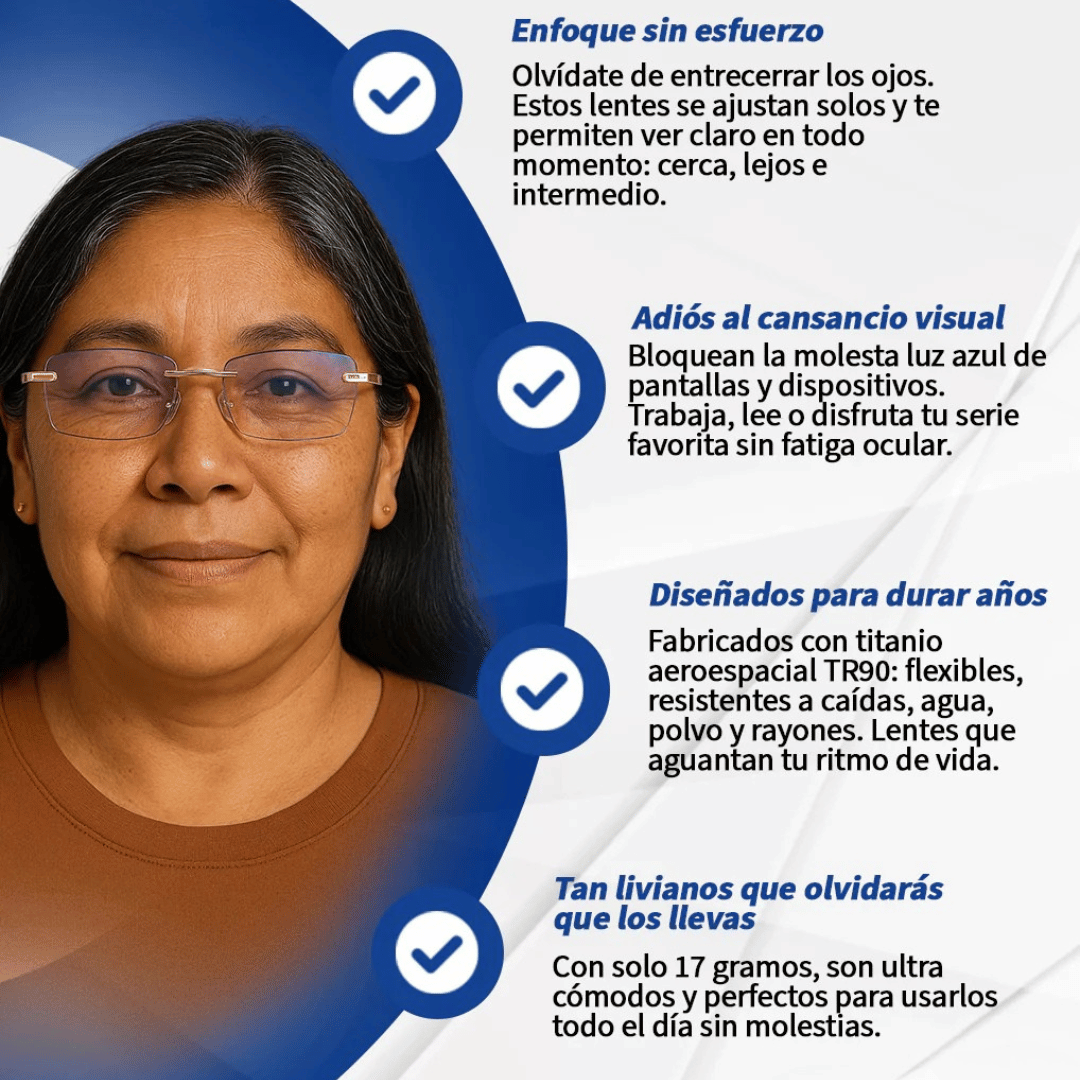 Gracias a sus lentes progresivas sin líneas de demarcación, permiten una transición suave entre diferentes distancias, evitando la necesidad de cambiar de gafas constantemente.